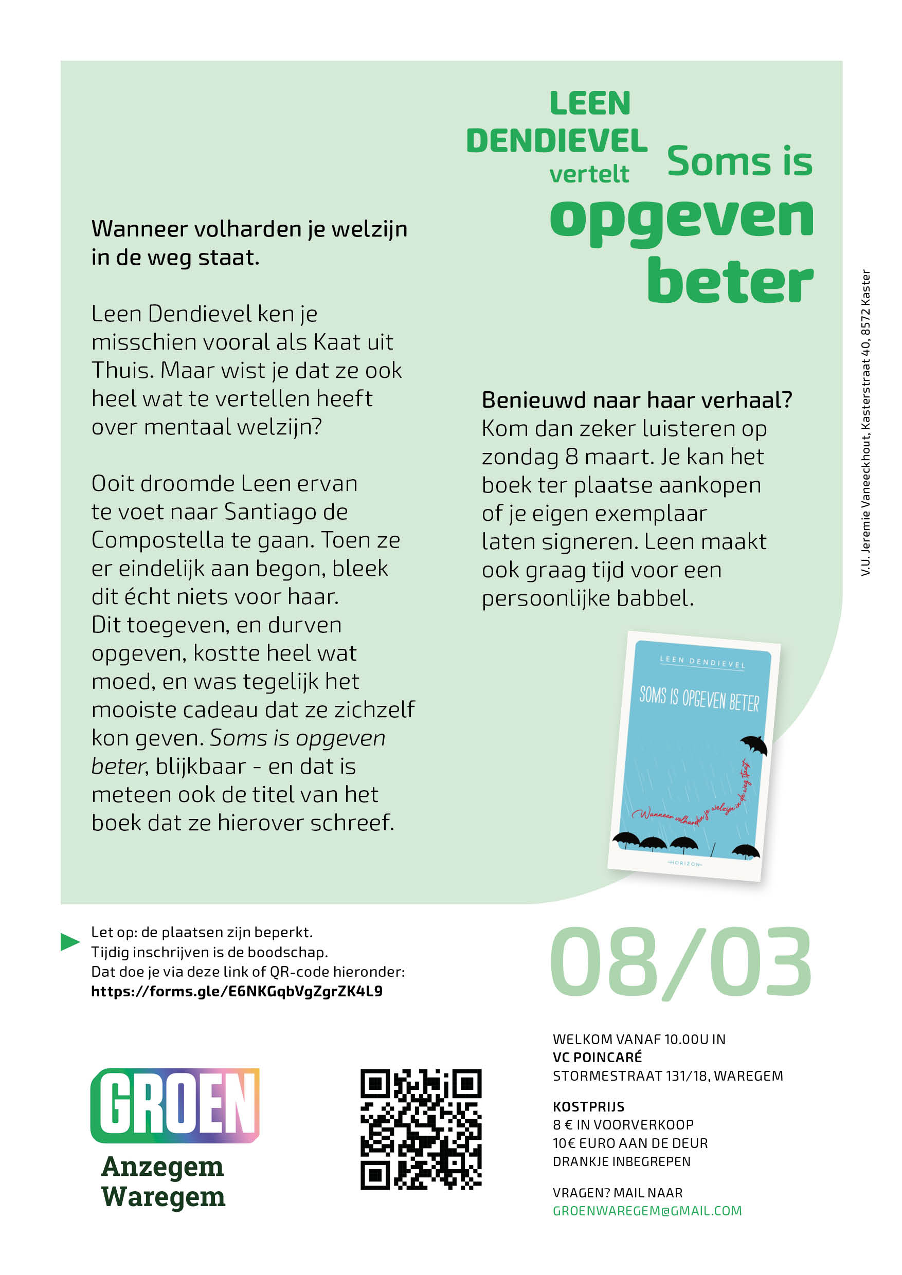 Registreer je via deze link: Leen Dendievel vertelt: Soms is opgeven beter
